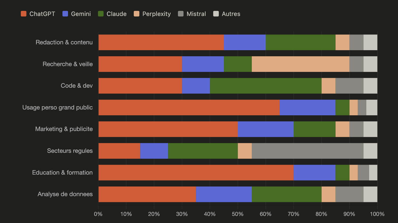 Claude, développé par Anthropic, est de plus en plus adopté en France, notamment par les professionnels et les développeurs. Il se distingue par sa capacité à traiter de longs documents, sa fiabilité rédactionnelle et son approche axée sur la sécurité et l'éthique de l'IA.